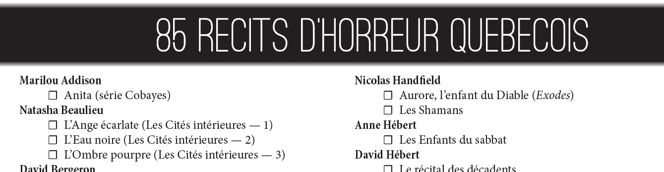 Une ado possédée par un cannibale. Un bateau peuplé de pervers. Un esprit meurtrier qui rôde dans Québec.